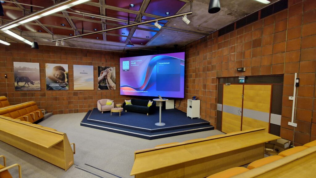 Suuret tilat vaativat erityisen tarkan suunnittelun, jotta jokainen osallistuja näkee ja kuulee hyvin. Meiltä saat helppokäyttöiset ja luotettavat ratkaisut erilaisten seminaarien järjestämiseen.