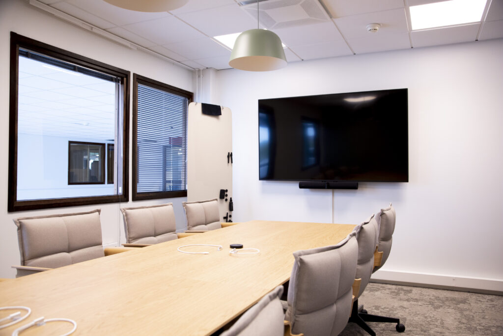 Toteutimme SSAB:n Raahen terästehtaan uutuuttaan kiiltävään tehtaan konttoriin ja tutkimuskeskukseen tyylikkään neuvottelutilatekniikan kokonaisuuden